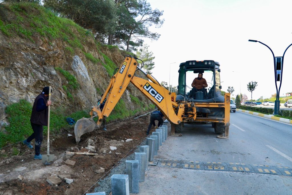 Burhaniye Belediyesi Fen İşleri Müdürlüğü ekipleri, Burhaniye–Ören yolu üzerinde Enver Güreli Caddesi’nde bisiklet ve yaya yolu çalışmalarını hız kesmeden sürdürüyor.