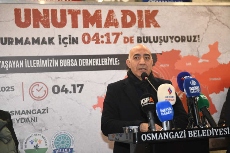 BURSA (İGFA) – Büyük felaketin meydana geldiği saat 04.17’de Osmangazi Meydanı’nda düzenlenen programda, depremde hayatını kaybeden yurttaşlar anıldı.