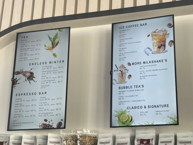 Ekonomik fiyatlarıyla kaliteli kahveler sunarak gençlerin yeni uğrak noktası olan Genç Kafe’de, su 10 liradan, soda 20 liradan, meyveli sodalar 35 liradan gençlere sunuluyor. Bubble Tea’s 60 lira, Milkshakeler 65 lira, diğer soğuk içeceklerin fiyatları ise 50 ila 60 lira arasında değişiyor. Sıcak çayın küçük boyu 15 liradan, büyük boyu ise 25 liradan gençlere sunuluyor.