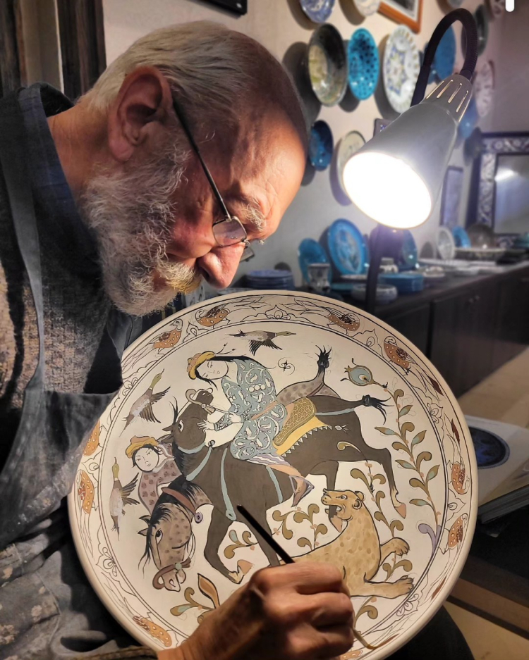 Babasının dayısının çok iyi bir çini ustası olduğunu belirten çini ustası Adil Can Güven, 17 yaşına kadar onun çıraklığını yaptığını, daha sonra ise Kütahya, Çanakkale ve Çan’daki ustaların yanında tedrisat görerek onlardan el aldığını ifade etti. 10 çeşit farklı Anadolu uygarlığına dair seramikler de yapabildiğini kaydeden Güven, çinilerde işlenen motif ve figürlerin ihtiva ettiği manaya da değindi. Güven, “Sadece bir desende mana bulabildim o da ‘Çintemani’dir. Üç tane göze benzer bu motif, Orta Asya Kaplanının desenidir. Şamanizm’den beri kaplan postu kuvveti temsil ettiği için herkesin sırtına alınırdı. Bizim Osmanlı Devleti’nde ise kaftanların üzerinde bu kaplan postunu görmekteyiz. Bir de çinilerde görmekteyiz. Tabi ki stilize edilmiştir, kaplan gibi değil ancak onu andıracak bir motiftir.” dedi.