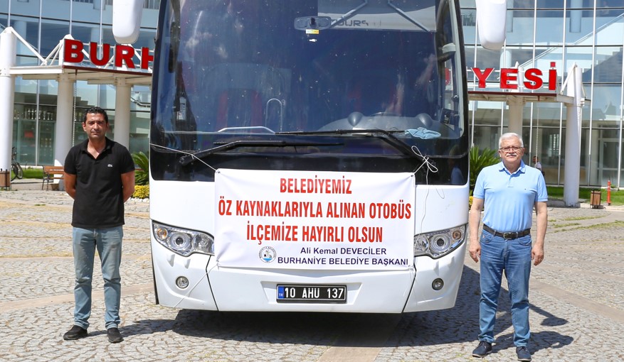 “Belediyemizin öz kaynaklarıyla araç filomuzu güçlendiriyoruz” diyen Burhaniye Belediye Başkanı Ali Kemal Deveciler “Otobüsümüz Burhaniyelilere hayırlı olsun” dedi.