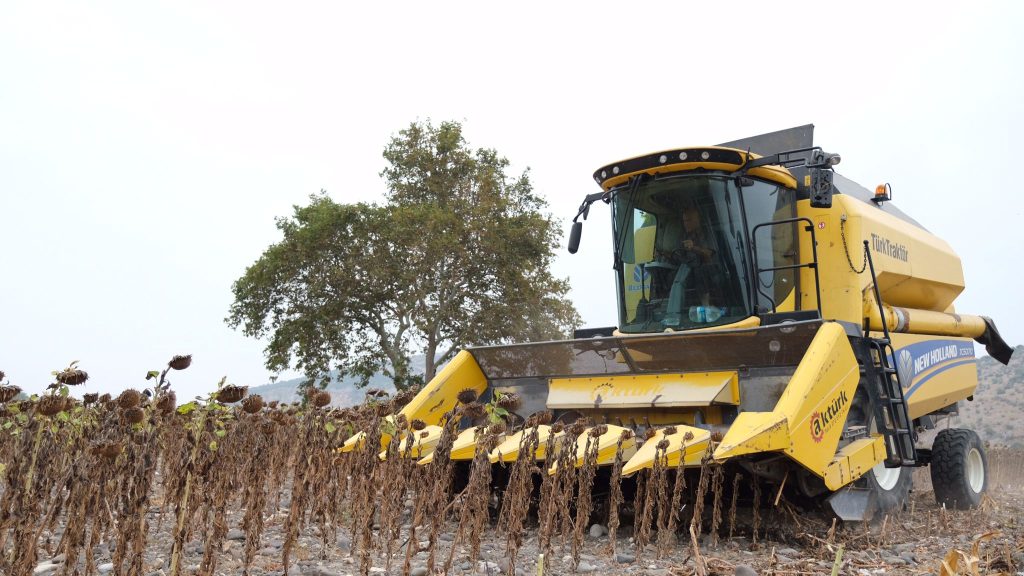Altıeylül Belediyesi’ne ait Pamukçu Mahallesi ile Nergiz Mahallesi arasında bulunan tarlalarda ilk ayçiçeği hasadı yapıldı.
