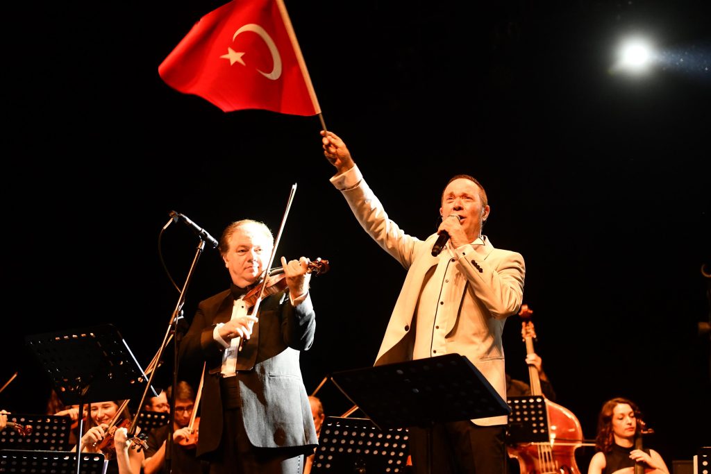 Dünyaca ünlü keman sanatçısı Cihat Aşkın ve Türk Halk Müziği’nin usta yorumcusu Sümer Ezgü’yü, Balıkesir’in kurtuluşunun 100. yılına özel olarak aynı sahnede buluşturduk. “Kahramanlık Türküleri” temasıyla düzenlenen konserde Balıkesirliler, unutulmaz bir müzik ziyafeti yaşadı. Konserde; Cihat Aşkın’ın şefliğindeki orkestra ve Sümer Ezgü’nün sesiyle, birçok Türk Halk Müziği eseri ilk kez yaylı orkestra eşliğinde yorumlandı. Sahnede zeybek oynayan Sümer Ezgü’ye seyirciler de eşlik etti. İki dev sanatçının yer aldığı konserde, kurtuluş coşkusunu sonuna kadar yaşayan Balıkesirliler, ellerindeki Türk Bayraklarıyla türkülere hep bir ağızdan eşlik ettiler.