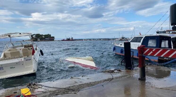 İlçede dün akşam saatlerinden itibaren etkili olmaya başlayan lodosun saatteki hızı, 50 kilometreye ulaştı. Bağlı bulunan tekneler ise lodos ve dalga nedeniyle Küçük Liman’a çarparak hasar gördü. ‘Sea Captian’ isimli, 7 metre uzunluğundaki tekne ise battı. Ters dönen tekne, vinçle karaya çıkarıldı.