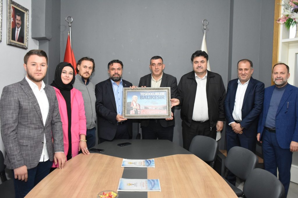 AK Parti İl Başkanı Dt. Ekrem Başaran, Havran ve Edremit İlçe Teşkilatlarını ziyaret ederek, Cumhurbaşkanı Erdoğan’ın Balıkesirlilere ve AK Parti Balıkesir Teşkilatlarına selamını ve teşekkürünü iletti. Havran ve Edremit İlçe Teşkilatları ile miting sonrası değerlendirme toplantısı da yapan AK Parti İl Başkanı Dt. Ekrem Başaran, Cumhurbaşkanı Recep Tayyip Erdoğan’ın “Balıkesir’e Teşekür” ettiği tabloyu hediye etti.
