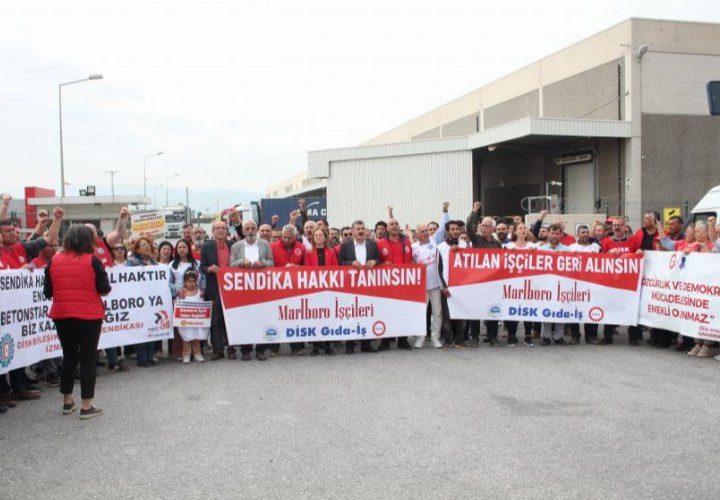 İzmir Torbalı’da DİSK/Gıda-İş Sendikasına üye oldukları için işten atılan Philip Morris ve Birleşik Metal-İş Sendikasına üye oldukları...