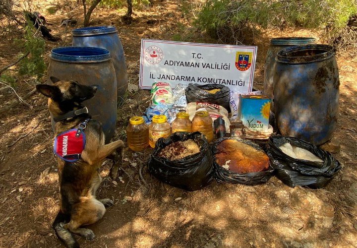Adıyaman’da 2018-2019 yılları arasında faaliyet gösteren örgüt mensupları tarafından kullanıldığı belirlenen yaşam malzemeleri toprağa gömülü vaziyette ele...