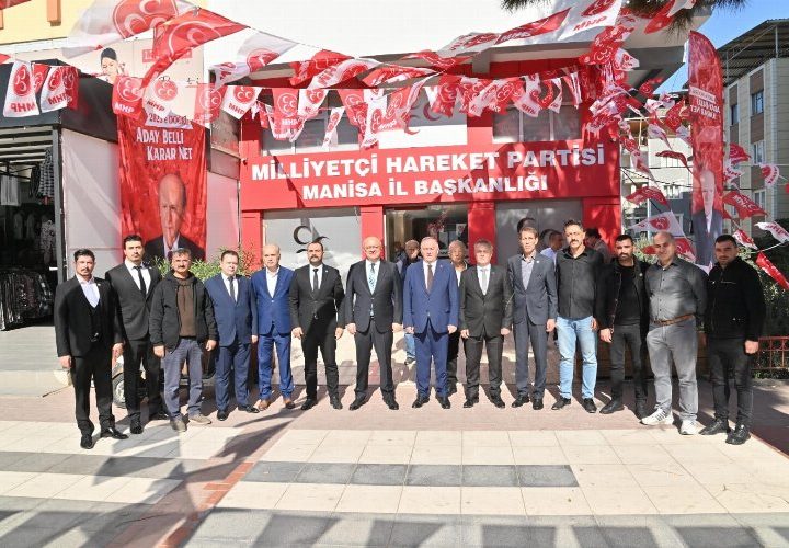MHP Grup Başkanvekili Erkan Akçay, Manisa Büyükşehir Belediye Başkanı Cengiz Ergün ve MHP İl Başkanı Murat Öner,...