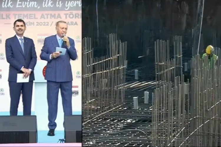 Cumhurbaşkanı Erdoğan, Çevre, Şehircilik ve İklim Değişikliği Bakanı Murat Kurum ile birlikte illere canlı bağlantı yaparak, temele ilişkin ilk betonların dökümünü sağladı.