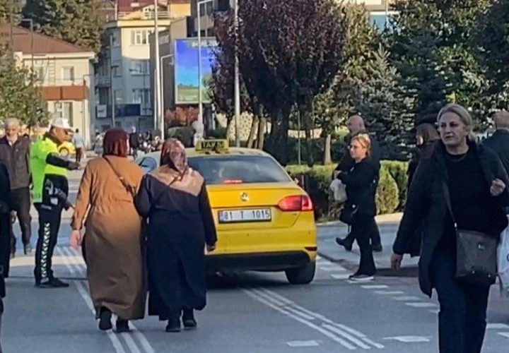 Düzce’de yaya yolunu kapatıp yolcu beklemek için duran ve polisin uyarılarına kulak tıkayan ticari taksi sürücüsüne, polis...