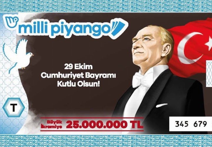 Milli Piyango 29 Ekim Cumhuriyet Bayramı özel çekilişinde büyük ikramiye 25 milyon TL, ikinci kategori ikramiyesi ise...