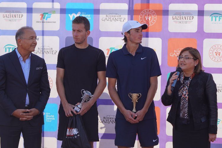 Mehmet Şimşek Tenis Kompleksi’nde organize edilen turnuvada, rakibini 6-2’lik setlerle 2-0 yenen Romen tenisçi İonel ile ikinci sıraya yerleşen Fransız Denolly, ödül töreninde kupalarını Büyükşehir Belediye Başkanı Fatma Şahin ve Türkiye Tenis Federasyonu Başkanı Cengiz Durmuş’tan aldı.