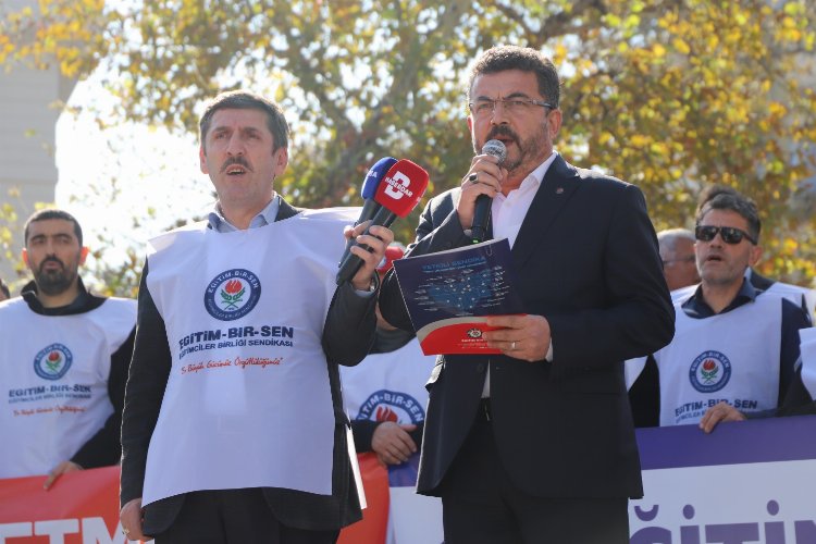 Burada basın açıklaması gerçekleştiren Eğitim-Bir-Sen Bursa 1 Nolu Şube Başkanı Ramazan Acar, “Eğitimin verimliliği ve niteliği, eğitim çalışanlarının hak ettiği değeri görmesi, özlük hakları boyutuyla da emeklerinin karşılığının verilmesiyle mümkündür. Meslek kanununun beklentileri yeterince karşılamaması üzerine talep ve önerilerimizi yetkililerle ve kamuoyuyla paylaşmak için bugün burada toplanmış bulunmaktayız. Hep birlikte ses vermemizin, ortak iradeyle söz söylememizin nedeni; önemi büyük, değeri yüksek, tarihsel rolü güçlü öğretmenlik mesleğinin ve öğretmenlerin meslek kanunundaki değişiklik ve revizyon talebini ve ihtiyacını haykırmaktır.” İfadelerini kullandı.