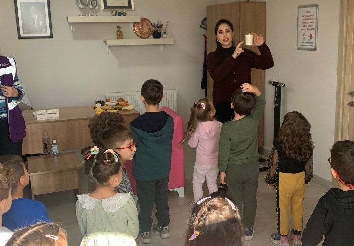 İzmit Belediyesi Kadın Girişimciler Merkezi’ni ziyaret eden Bilgi Yuvası Kreşi öğrencileri Diyetisyen Gizem Aydın’dan sağlıklı beslenme konusunda...
