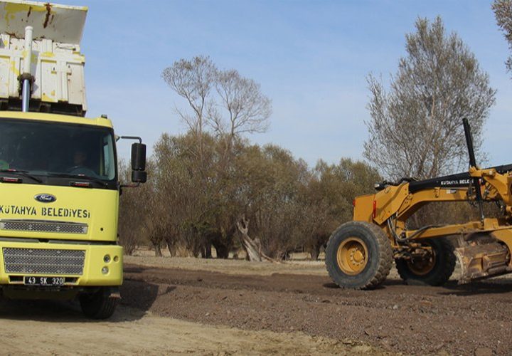 Kütahya Belediyesi Fen İşleri Müdürlüğü ekipleri, yeni Adalet Sarayı inşaatının arkasında bulunan bölgede ham yol açım çalışması...