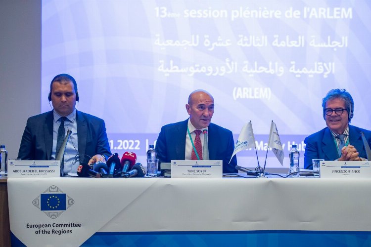 İZMİR (İGFA) – Akdeniz’in kuzeyi ile güneyindeki yerel yönetimlerin işbirliğini teşvik etmek amacıyla kurulan Avrupa – Akdeniz Bölgesel ve Yerel Meclisi (ARLEM) 13. Genel Kurulu İzmir Özdere’de sürüyor. Bölgedeki işbirliklerine dair birçok toplantının yapıldığı ARLEM Genel Kurulu’nun ikinci gününde, İzmir Büyükşehir Belediye Başkanı Tunç Soyer “Akdeniz’de iklim eylemi: Şarm El-Şeyh’teki COP27’ye ARLEM mesajı” konulu toplantıda konuştu.