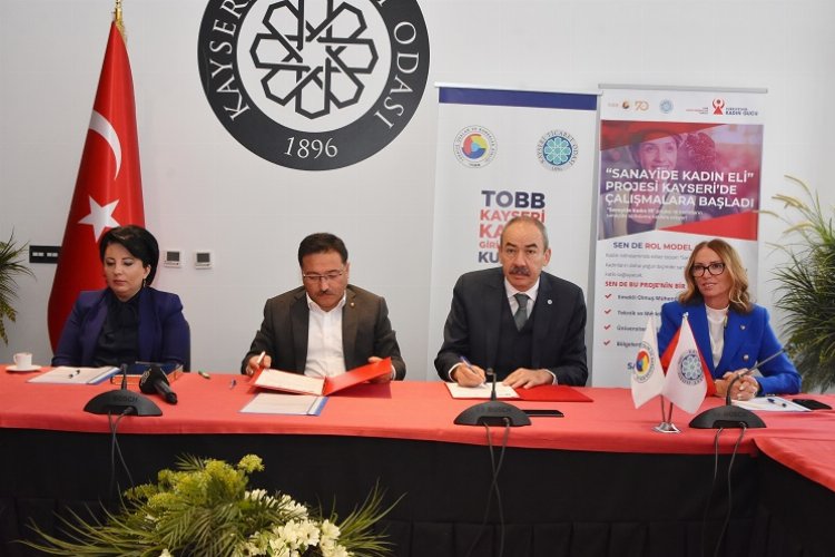 Türkiye Odalar ve Borsalar Birliği (TOBB) Kadın Girişimciler Kurulu’nun sanayide kadın istihdamını artırmaya yönelik hayata geçirdiği ve Kayseri’de de çalışmalarına başlanan ‘Sanayide Kadın Eli Projesi’ için proje paydaşlarının katılımı ile bilgilendirme toplantısı ve protokol imza töreni gerçekleştirildi. Kadınların sanayide istihdama katılımını artırmak, sanayinin nitelikli istihdam ihtiyacının karşılanmasına katkı sağlamak amacıyla başlatılan projenin lansmanı Kayseri Ticaret Odası (KTO) ev sahipliğinde yapıldı.