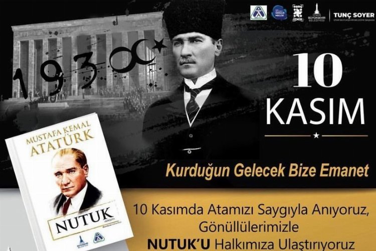 İzmir Büyükşehir Belediyesi, Ulu Önder Mustafa Kemal Atatürk’ü şehrin 16 noktasında 10 binin üzerinde dağıtacağı “Nutuk” ile anacak. Ayrıca İzmirliler, Atalarına mektup yazacak.