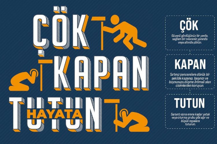 İçişleri Bakanlığı Afet ve Acil Durum Yönetimi Başkanlığı koordinesinde, bugün saat 18.57’de 81 ilde eş zamanlı ÇÖK-KAPAN-TUTUN tatkbikatı düzenlenecek.