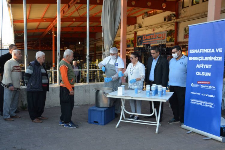 Antalya Büyükşehir Belediyesi, Alanya Hali’ndeki esnaf ve çalışan personele her Perşembe çorba ikramında bulunuyor.
