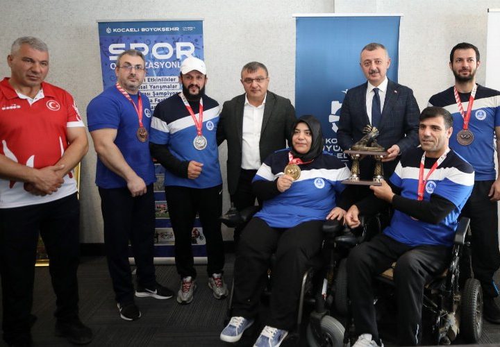 Kocaeli Büyükşehir Belediye Başkanı Tahir Büyükakın, son üç ayda ulusal ve uluslararası müsabakalarda başarılı olan sporcularla bir...