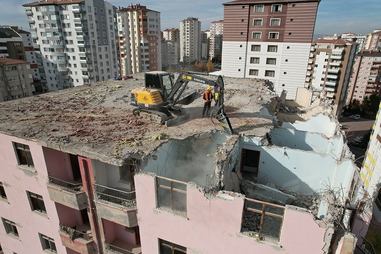 Kayseri’nin Talas ilçesi genelindeki birçok metruk binanın yıkımını gerçekleştiren Talas Belediyesi, bu kez de hem yapı güvenliği taşımayan hem de bölgede huzursuzluk oluşturan 10 katlı binanın yıkımına başladı.