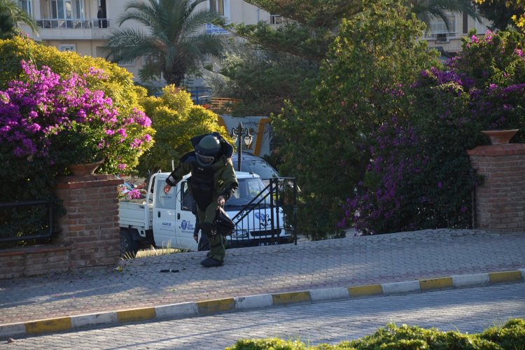 Aydın’ın Didim ilçesinde belediye hizmet binasının duvarında unutulan çanta, bomba ihbarı dolayısıyla emniyet güçlerince patlatıldı.