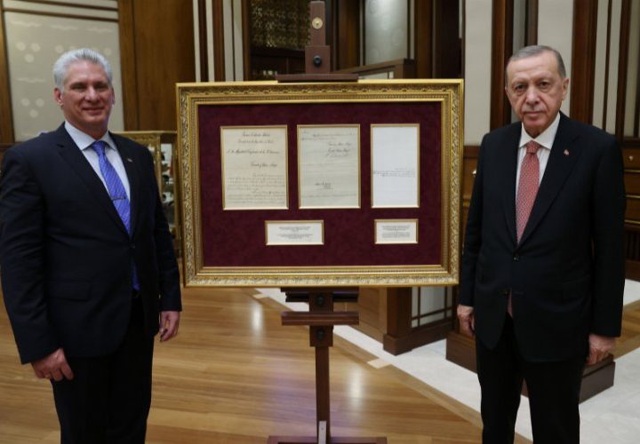 Cumhurbaşkanı Recep Tayyip Erdoğan, Küba Devlet Başkanı Miguel Mario Diaz-Canel Bermudez’e, 1902’de Küba Cumhurbaşkanı Tomas Estrada Palma’nın...
