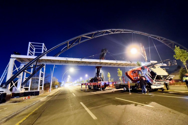 ANKARA (İGFA) – Ankara Büyükşehir Belediyesi, araç trafiğinin yoğun olduğu bölgelerde vatandaşların güvenli bir şekilde yolun karşısına geçebilmeleri için yaya üst geçit yapım çalışmalarını sürdürüyor.