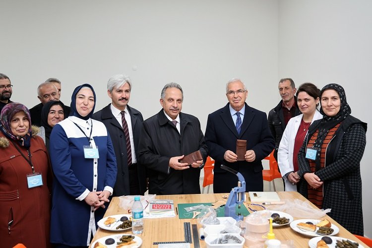 Özellikle deriden yapılan kemer ve cep telefonu kılıfı gibi ürünleri yakından inceleyen Başkan Yalçın ve Kaymakam Dönmez, aynı zamanda kooperatif bünyesinde bu işlerin öğretimi için açılan kurslardaki 30 kadını aile ekonomisine sağladıkları katkılarından ve girişimlerinden ötürü tebrik etti.