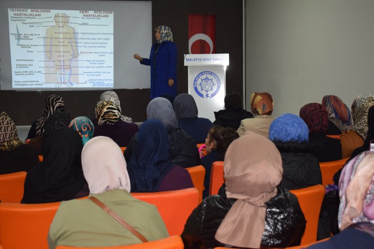 MALATYA (İGFA) – Kent Konseyi Fethi Gemuhluoğlu Konferans Salonu’nda düzenlenen programa, Malatya Kent Konseyi Kadın Meclisi Başkanı Saliha Bulut, Malatya Battalgazi İlçe Sağlık Müdürlüğü görevlisi Diyetisyen Sümeyye Fırat ve Kadın Meclisi üyeleri katıldı.