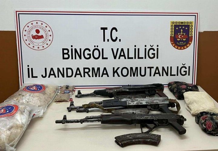 Bingöl’ün Genç ilçesi kırsalında bölücü örgütüne ait toprağa gömülü vaziyete bulunan jelikan içerisinde 3 adet kalaşnikof, mermiler...