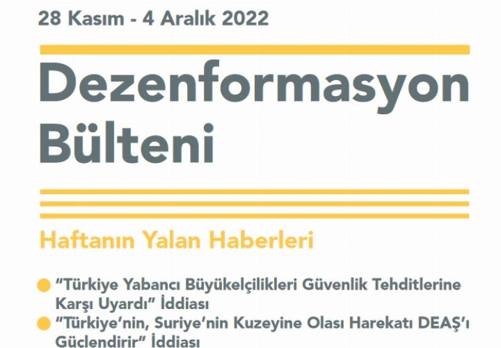 Cumhurbaşkanlığı İletişim Başkanlığı 28 Kasım-4 Aralık Dezenformasyon Bülteni’ni yayımladı ANKARA (İGFA) – Cumhurbaşkanlığı İletişim Başkanlığınca, 28 Kasım-4...