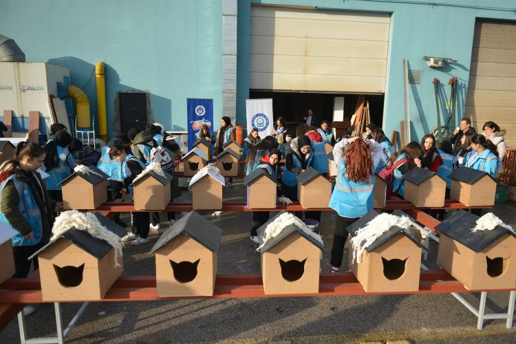 Bursa’da Yıldırım Belediye Başkanı Oktay Yılmaz gençlerle birlikte, sokak hayvanları için yuva yapıp boyadı.