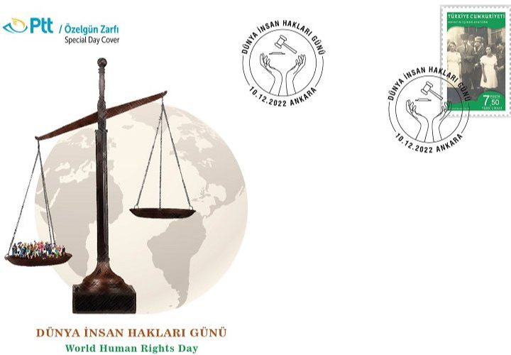 PTT AŞ tarafından “Dünya İnsan Hakları Günü” konulu özelgün zarfı 10 Aralık 2022 tarihinde tedavüle sunuldu. ANKARA...