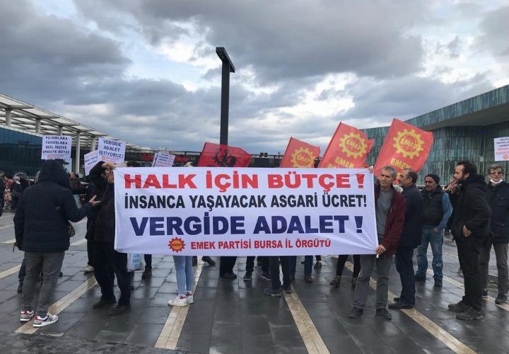 Emek Partisi Bursa İl Örgütü asgari ücrete ilişkin Kent Meydanı’nda basın açıklaması yaptı. BURSA (İGFA) – Emek Partisi...