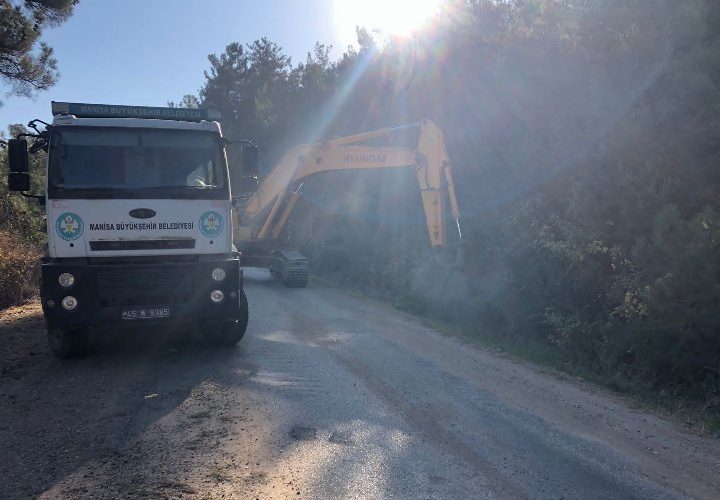 Manisa Büyükşehir Belediyesi Yol Yapım Bakım ve Onarım Dairesi Başkanlığı ekipleri, Ahmetli-Turgutlu arasında 16 kilometrelik güzergahta araç...