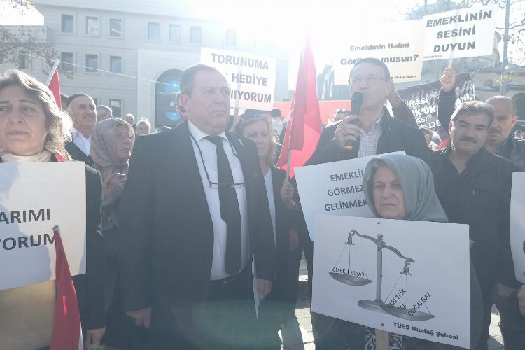 BURSA (İGFA) – Emekliler olarak seslerini duyurmak için toplandıklarını kaydeden Türkiye Emekliler Derneği(TÜED) Uludağ Şube Başkanı Kenan Pars, emeklinin toplumun el üstünde tutulması gereken kesimi olduğunu söylerken, ” Emekliyi, asgari ücretliyi fakir fukara olarak görenler, emekliye verileni de sadaka gibi veriyor. Emekli sadaka değil, hakkını istiyor. Emekliye TÜİK’in inandırıcılığı olmayan komik rakamlarına mahkum edenler, emekliyi sistematik şekilde bugünkü duruma getirdi. 2002 yılında asgari ücret 184,25 TL iken, en düşük işçi emeklisi aylığı 257 TL idi. TÜFE’ye endeksli yüzdeli zamlarla 20 yılda bugün en düşük emekli aylığı 3 bin 500 TL’ye tamamlanırken, aslında bu rakamın çok altında. Emekli aylığı 3 bin 500 liranın altında olanlara sosyal yardım olarak veriliyor bu fark. Emekliyi sosyal yardıma muhtaç ettiler. En düşük emekli aylığı 3 bin 500 TL ye tamamlanırken asgari ücret şuan 5 Bin 500 TL. Ortalama emekli aylığı ise 4 Bin 600 civarında. Açlık sınırı yaklaşık 7 bin 800 Lira, Yoksulluk sınırı yaklaşık 25 bin 400 Lira. Açlık sınırı 4 kişilik bir ailenin sağlıklı, dengeli ve yeterli beslenebilmesi için zorunlu olarak yapması gereken en düşük aylık harcama tutarı. En düşük emekli aylığının 2 katından fazla.