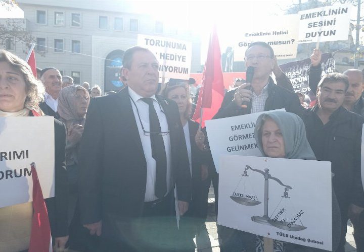 Türkiye Emekliler Derneği Uludağ Şube Başkanı Kenan Pars, Bursa 15 Temmuz Demokrasi Meydanı’nda basın açıklaması yaptı. TÜED...