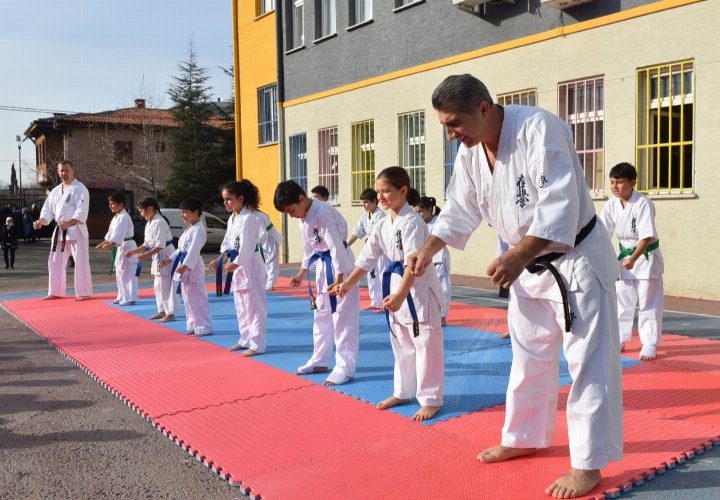 Bursa’da Yıldırım Belediyesi Jimnastik Spor Kulübü Karate Takımı, karateyi öğrencilere tanıtmak ve spora teşvik etmek için Şehit...