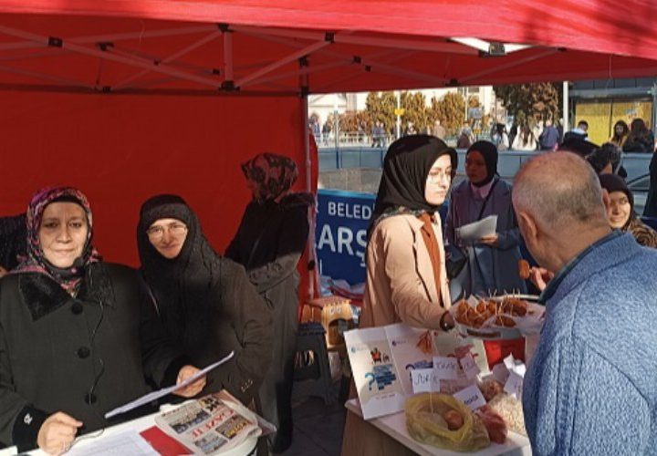 Saadet Partisi Kadın Kolları, 17 Aralık şehitleri için lokma dağıtırken, yerli malı haftasına da dikkat çekildi. KAYSERİ/MEHMET...