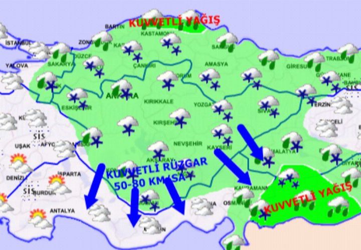 Kıyı kesimler, Marmara’nın doğusu, Güneydoğu Anadolu’nun doğusu ile Şanlıurfa çevrelerinde yağmur, yağış alan diğer yerlerde karla karışık...
