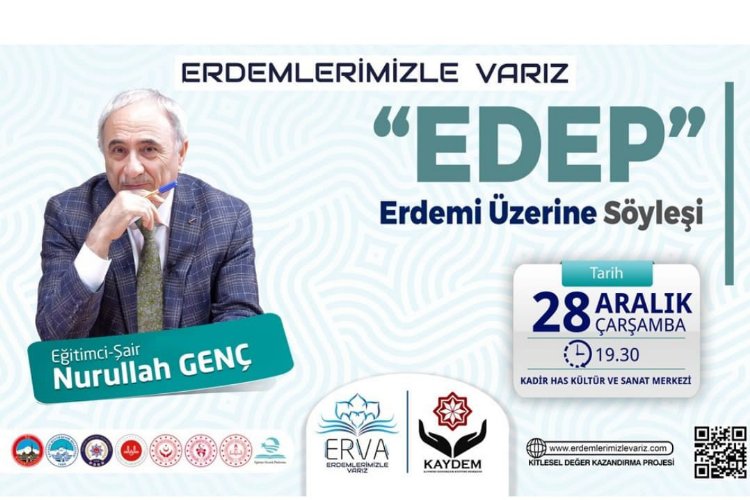 Kayseri Büyükşehir Belediyesi ve Kayseri Valiliği’nin de paydaşı olduğu ‘Erdemlerimizle Varız projesi’ kapsamında “Edep Erdemi” konulu söyleşi düzenleyecek.