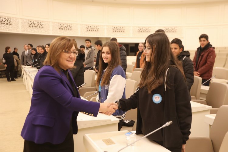 “Her Zaman Birlikte” projesi kapsamında Büyükşehir Belediyesi Meclis Salonu’nda öğrencilerle bir araya gelen Başkan Fatma Şahin, yaptığı konuşmada gençleri ağırlamaktan mutluluk duyduğunu belirterek, şunları söyledi: