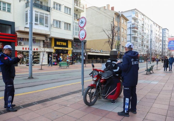 Eskişehir Büyükşehir Belediyesi Zabıta Dairesi ekipleri araç trafiğine kapatılarak yayalaştırılmış yollarda motosiklet, elektrikli bisiklet ve scooter kullanımına...