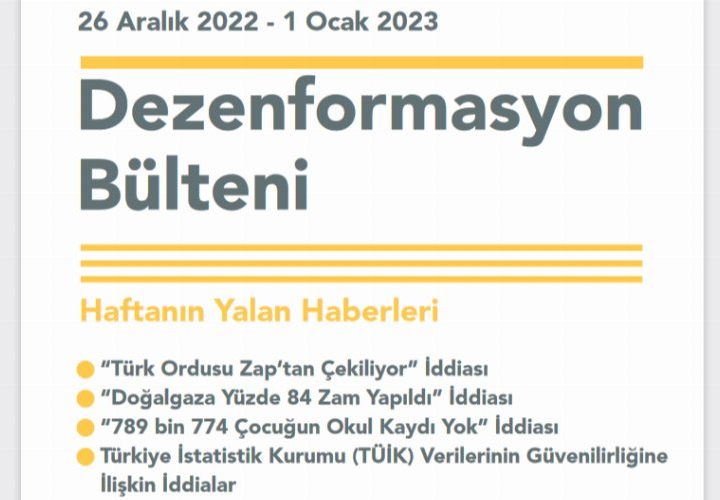 İletişim Başkanlığı, haftalık olarak yayımladığı ‘Dezenformasyon Bülteni’nde bu hafta “Türk Ordusu’nun Zap’tan Çekiliyor” ve “Doğal gaza yüzde...
