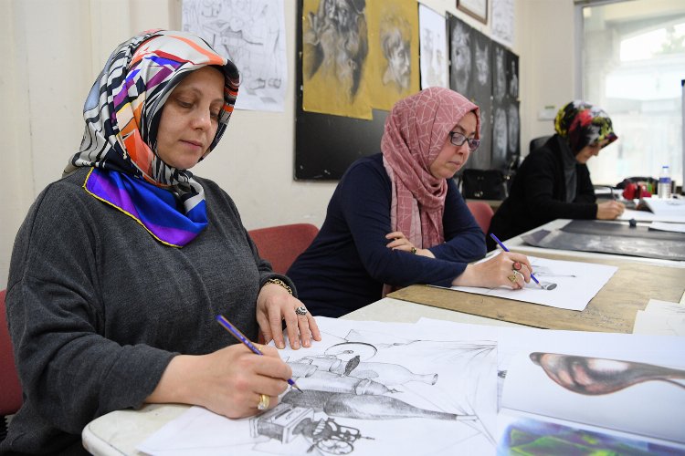 Bursa’da Osmangazi Belediyesi Meslek Edindirme Kursları (OSMEK) bünyesinde açılan resim kursundan faydalanan kursiyerler, hobi amaçlı başladıkları eğitimlerini üniversite kazanarak taçlandırıyor.