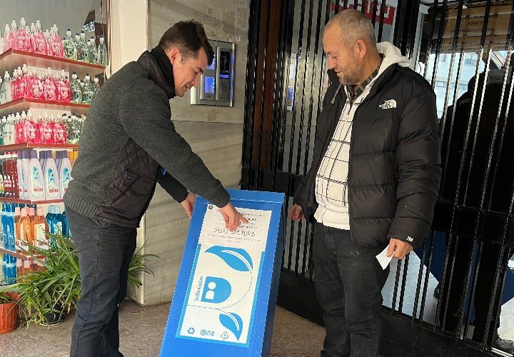 İzmir’in Karabağlar Belediyesi İklim Değişikliği ve Sıfır Atık Müdürlüğü, iç ve dış mekân ambalaj atığı biriktirme ekipmanı...