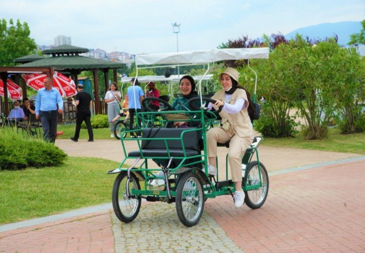 Samsun Büyükşehir Belediyesi’nin Batı Park Yürüyüş Yolu’nda hizmete sunduğu 4 kişi kapasiteli aile bisikleti, vatandaşlardan büyük ilgi...