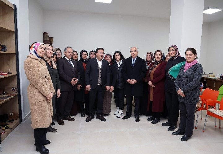 Kayseri Valisi Gökmen Çiçek ve Talas Belediye Başkanı Mustafa Yalçın, Başakpınar Umay Kadın Üretici Kooperatifi’nde deri çanta...